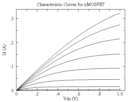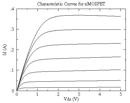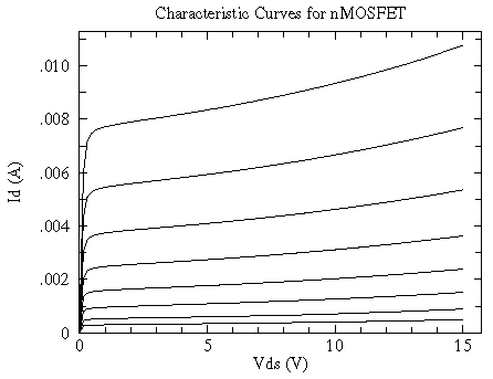 In the simplest approximation the characteristic curves of a nMOSFET are a set of flat lines: