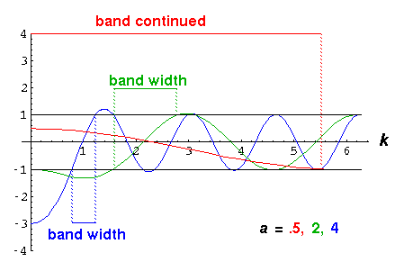 to say a=3 (in red) the band widens. At a=2 it would extend up to