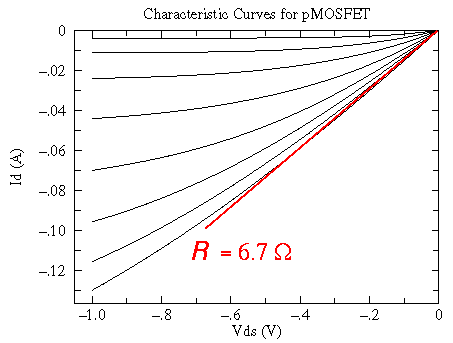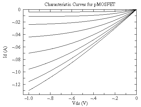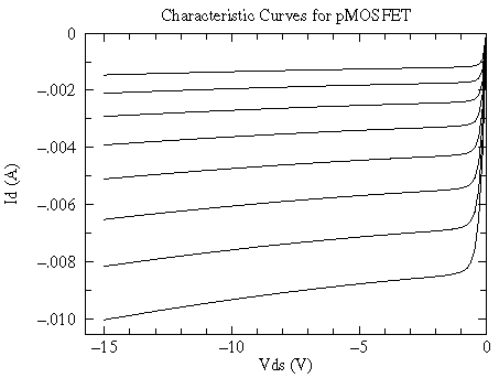 In the simplest approximation the characteristic curves of a pMOSFET are a set of flat lines: