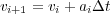 where the indices refer to current and previous time steps. Similarly for velocity and position we get