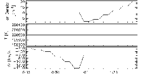 For this plot type, choose to plot your whole time range (which will probably be set automatically. Also, choose to display all three data types that are possible on this plot: “mpnose”, “rpmin”, and “lt_at_rmin”. Take the uncertainity in all of the upplied distances to be 0.1 RE. The one of these that you will be most interested in is “mpnose” which is the distance from the center of the earth to the subsolar point of the magnetopause. Save a copy of this plot. Also click the option at the bottom to save the data to a text file, and be sure to save the text file.