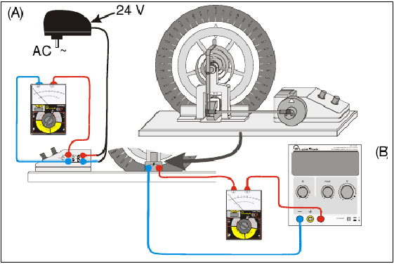 In this experiment you will use the torsion pendulum, the power supply for the driving motor, a low voltage power supply for the eddy current damper, two digital multimeters, and a stop watch.